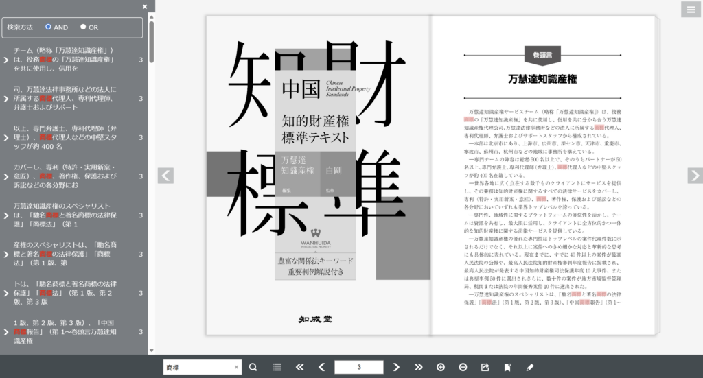 『中国知的財産権標準テキスト』より”商標”を検索した画面