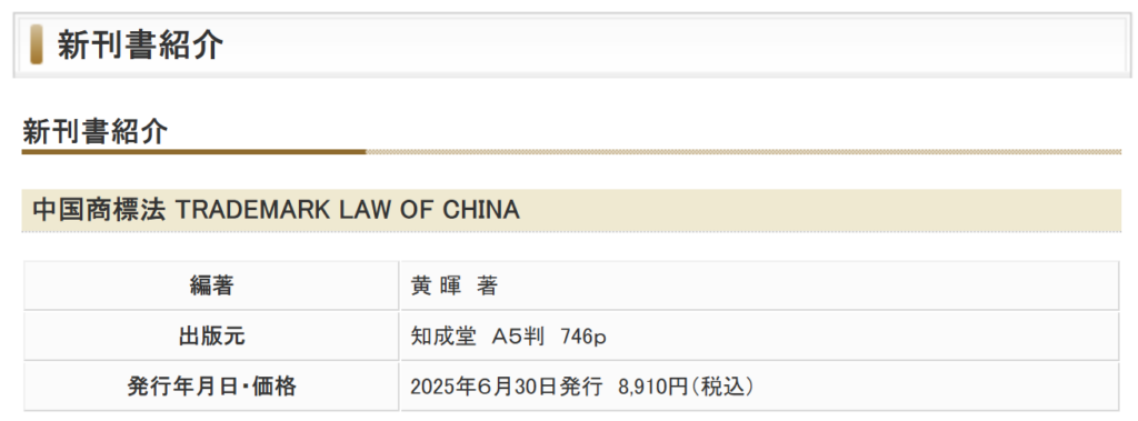 書籍『中国商標法 TRADEMARK LAW OF CHINA』が、一般社団法人日本知的財産協会(JIPA)発行の『知財管理』誌2月号でご推薦いただき、新刊紹介記事として掲載されました。
